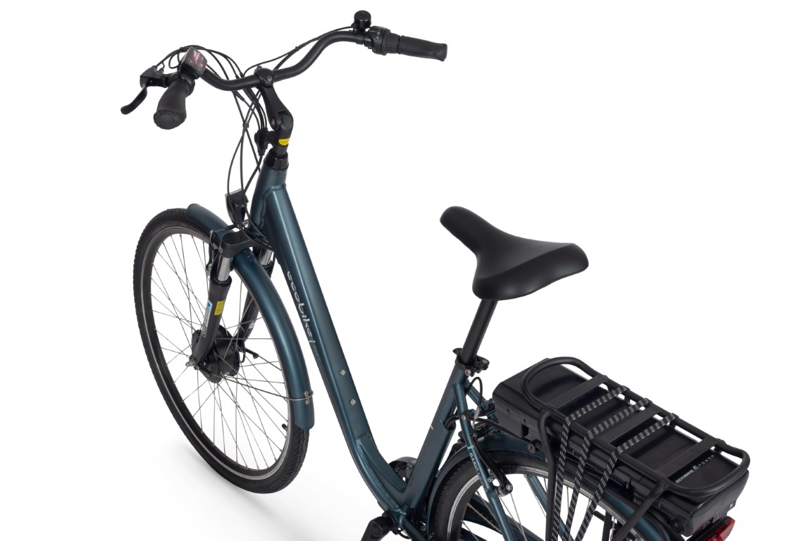Ecobike Basic już swoją nazwą zdradza, że jest podstawowym e-bikiem w naszej ofercie. Jego system elektrycznego wspomagania rozwija moc 250W i pozwala mknąć przez miasto 25 km/h. Silnik mieści się w piaście tylnego koła, a bateria na bagażniku. Obsługę wspomagania umożliwia klasyczny wyświetlacz LED – ergonomiczny i łatwy w użytkowaniu.